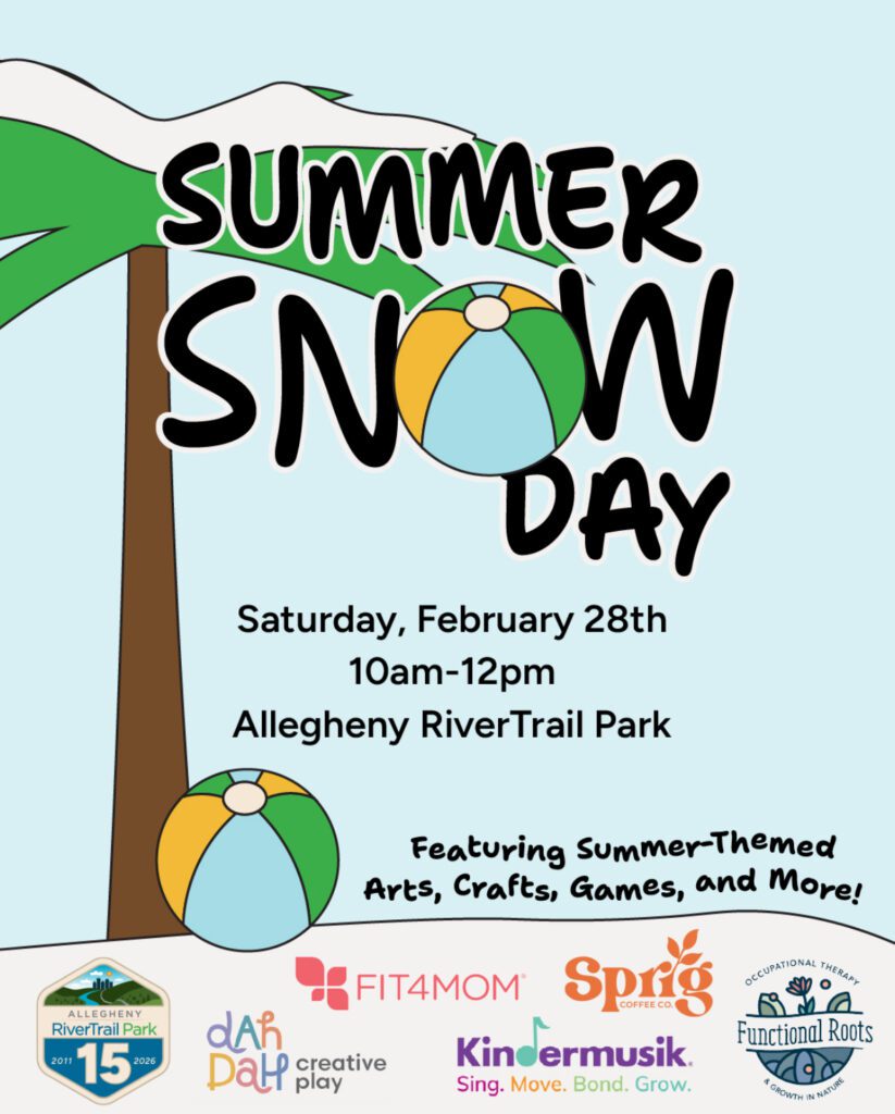 Join us at the park for a Summer Snow Day full of fun with Dah Dah PGH, Kindermusik, FIT4MOM, and Sprig Coffee Company.