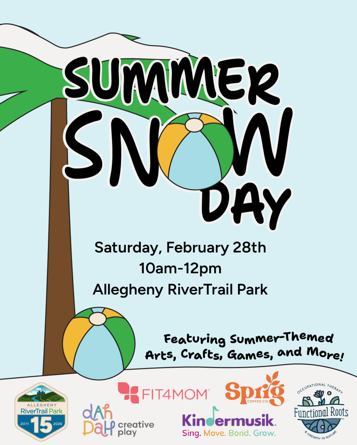 Allegheny RiverTrail Park 285 River Ave, PittsburghDreaming of summer fun? Us too! On February 28th, we're celebrating summertime at ARP... we just couldn't wait any longer! Join us at the park for a Summer Snow Day full of fun with Dah Dah PGH, Kindermusik, FIT4MOM, and Sprig Coffee Company. This free event is open from 10 am - 12 pm and […]